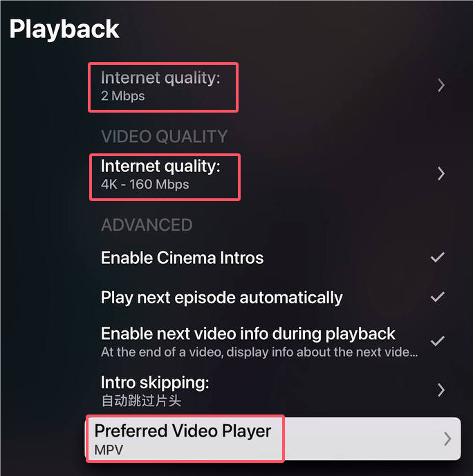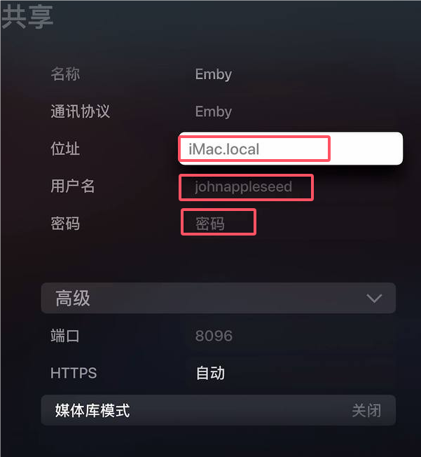 注意:提示密码错误,需要更新Infuse为7.7版以后,添加时高级里媒体库模式保持默认状态。