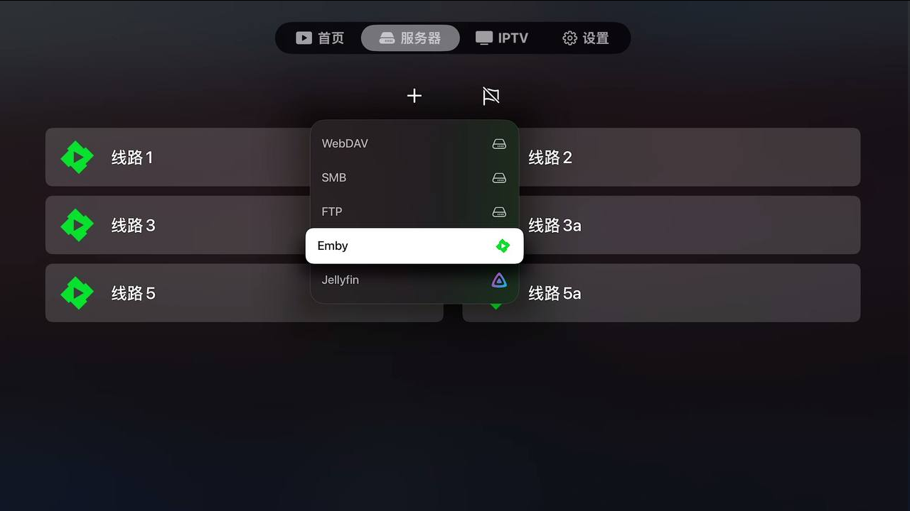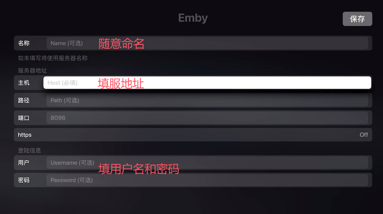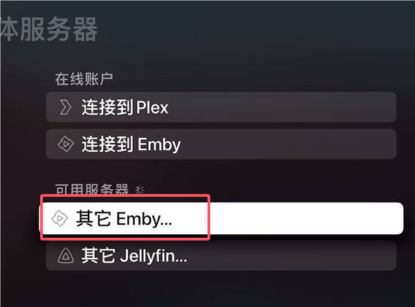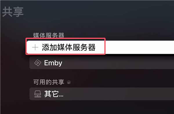 开始:添加共享媒体库,选择其他emby, 输入地址,用户名和密码,保存, 结束。