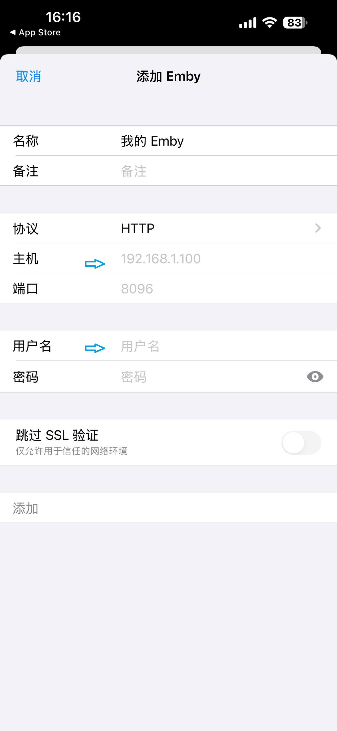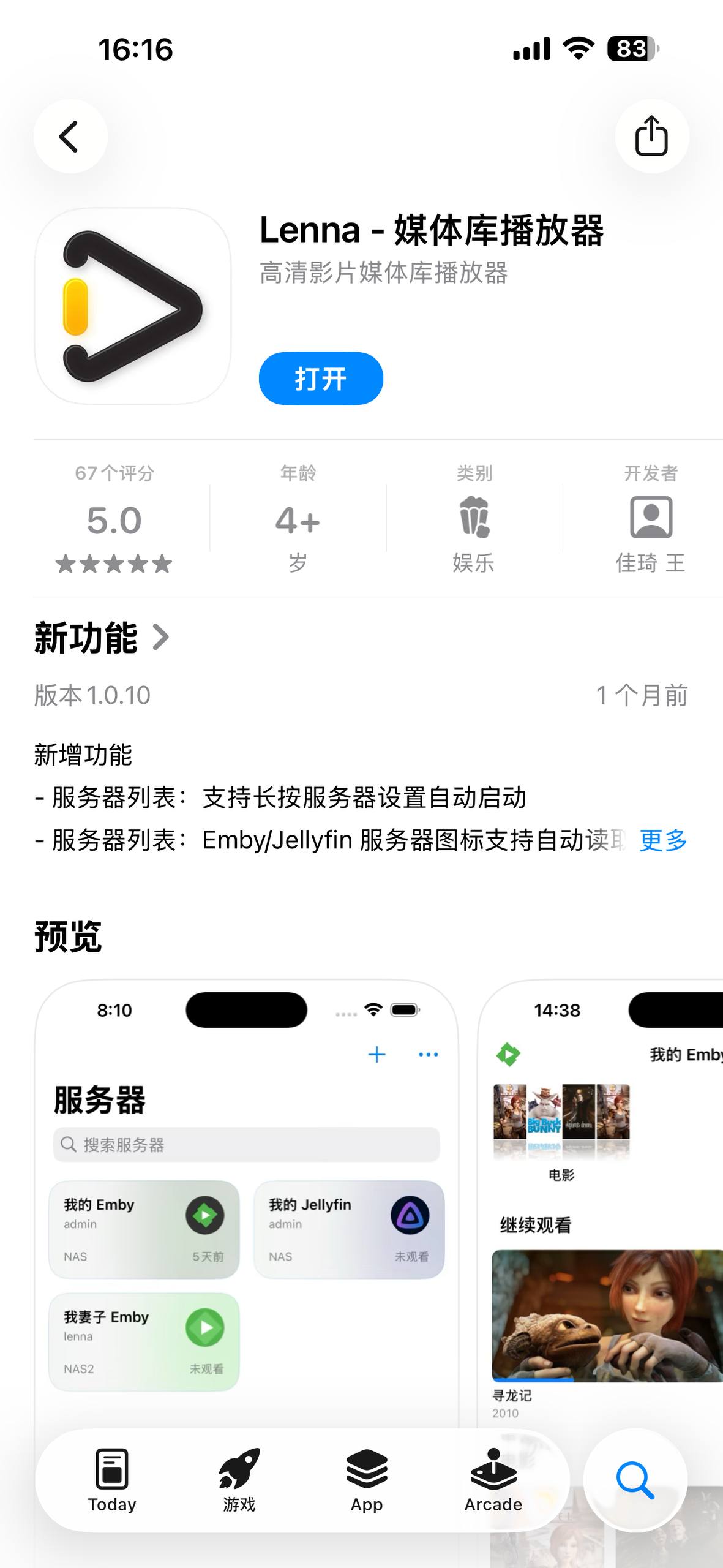 音乐服 下载地址 (填上主机,用户名密码,勾上直连模式进入,无需PRO)设置里-在线音乐品质选择无损,资料库 全部分区 选择音乐板块或有声书板块 影库 1 SENPLAYER 应用 推荐买断,便宜好用! 商店安装 2 EMBY 官方应用 解琐需38元,不推荐 3 LENNA 免费好用 需要外区id 操作图示 3 infuse 新增文件,选择其他emby, 输入地址,用户名和密码,保存即可。